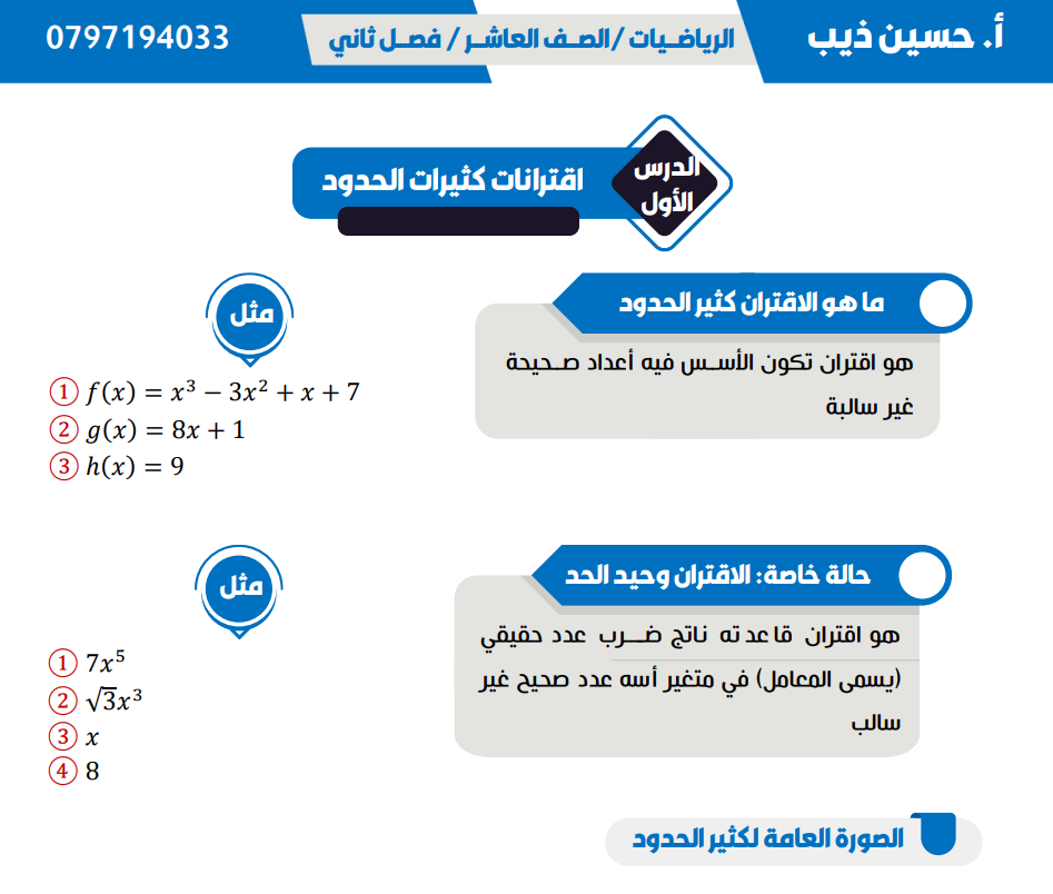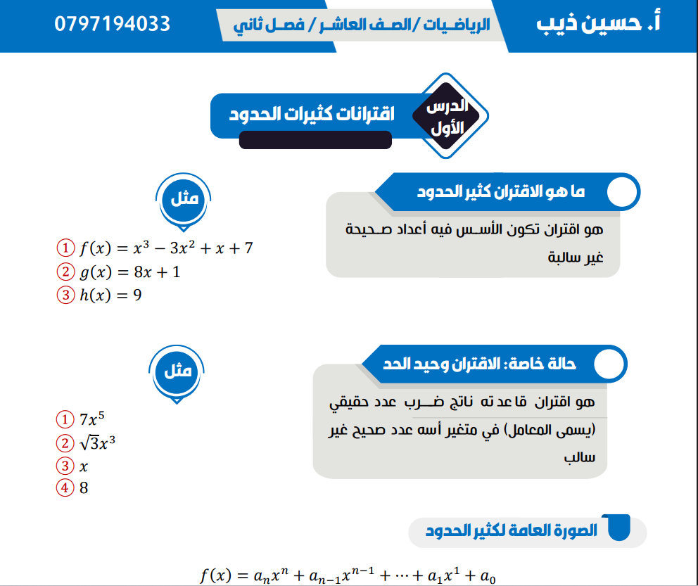 ورقة عمل كثيرات الحدود أ. احمد ابو سويد | الرياضيات (الصف العاشر )