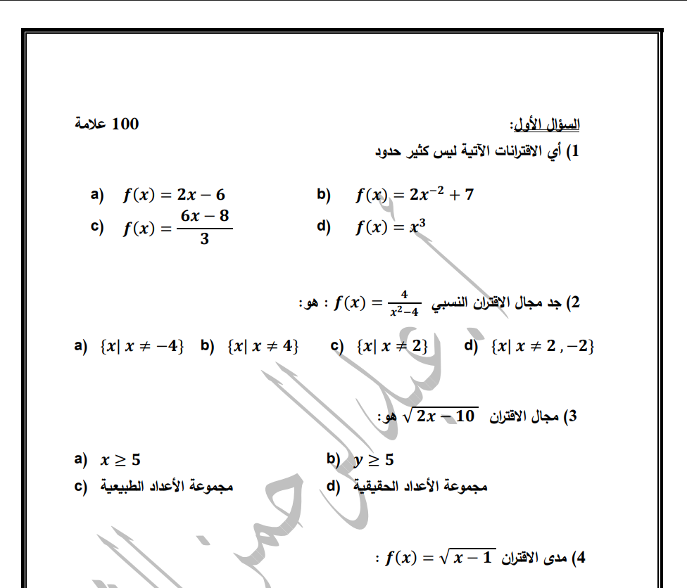 اختبار نهاية الوحدة أ. احمد ابو سويد | الرياضيات (الصف العاشر)