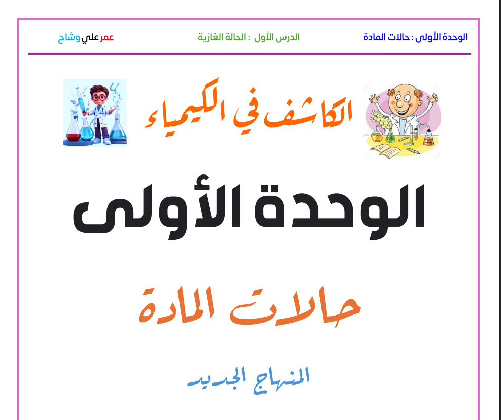 الدرس ( 1 ) الحالة الغازية الوحدة ( 1 )