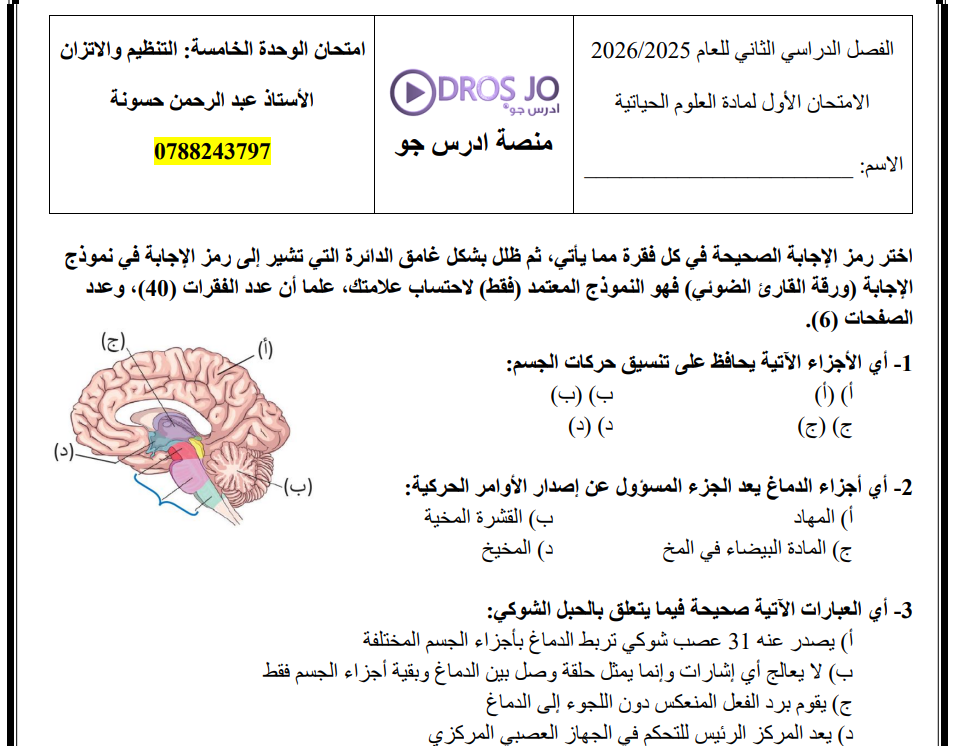 امتحان الوحدة 6+7 جيل 2008