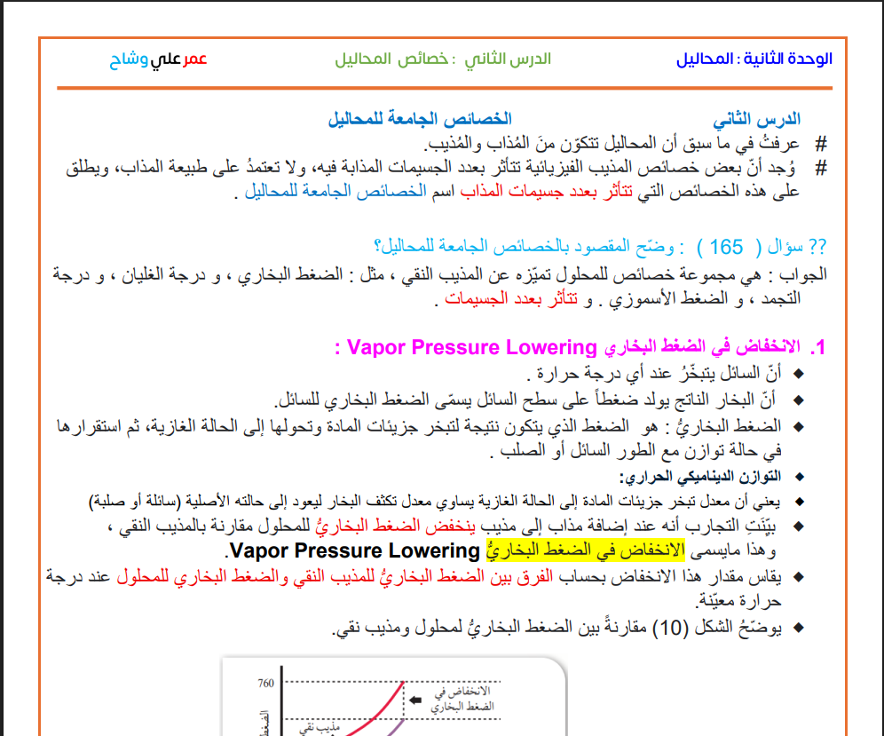 الدرس (2 ) خصائص المحاليل الوحدة ( 2)
