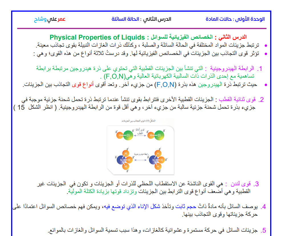 الدرس ( 2 ) الحالة السائلة الوحدة (1 )