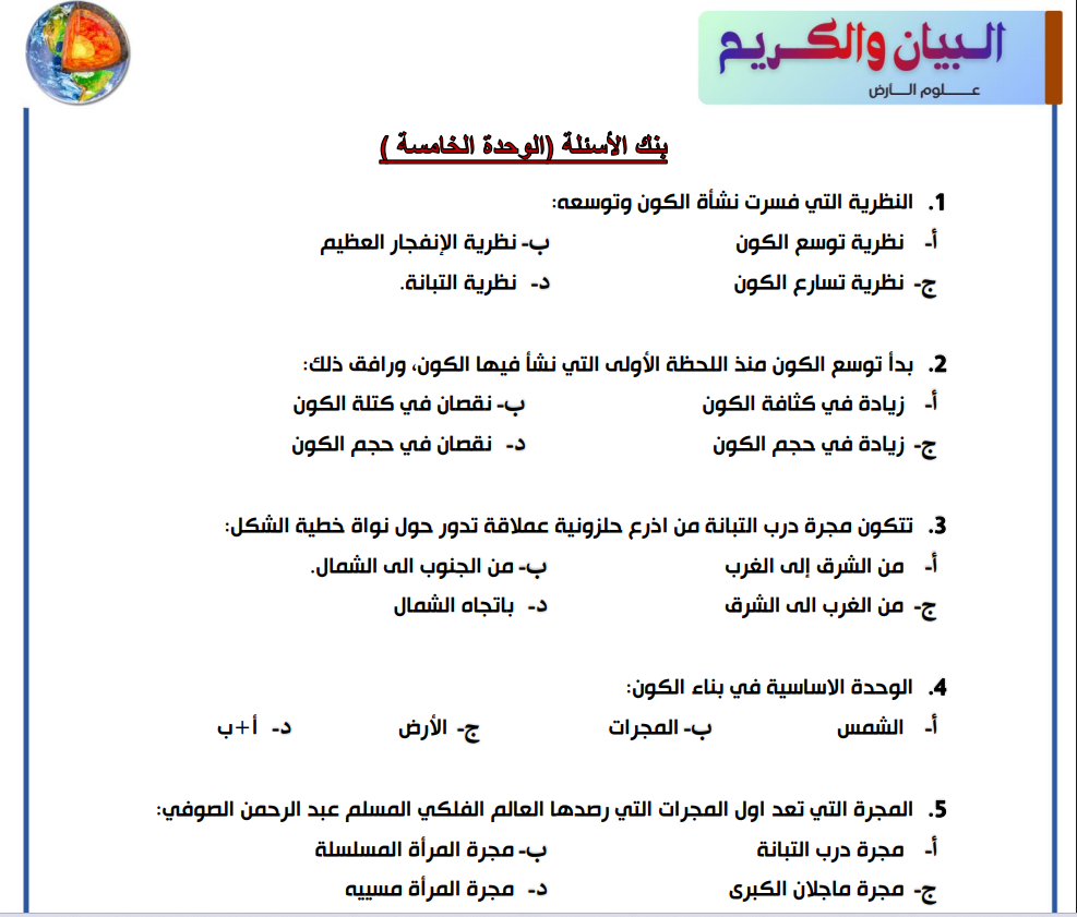 بنك الاسئلة (علوم الارض والبيئة ).pdf