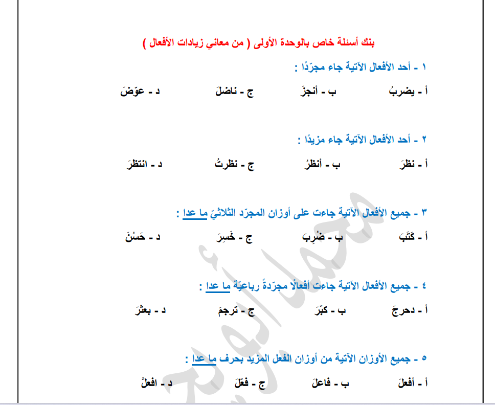 بنك أسئلة خاص بدرس معاني الزّيادة في الأفعال 2008.pdf