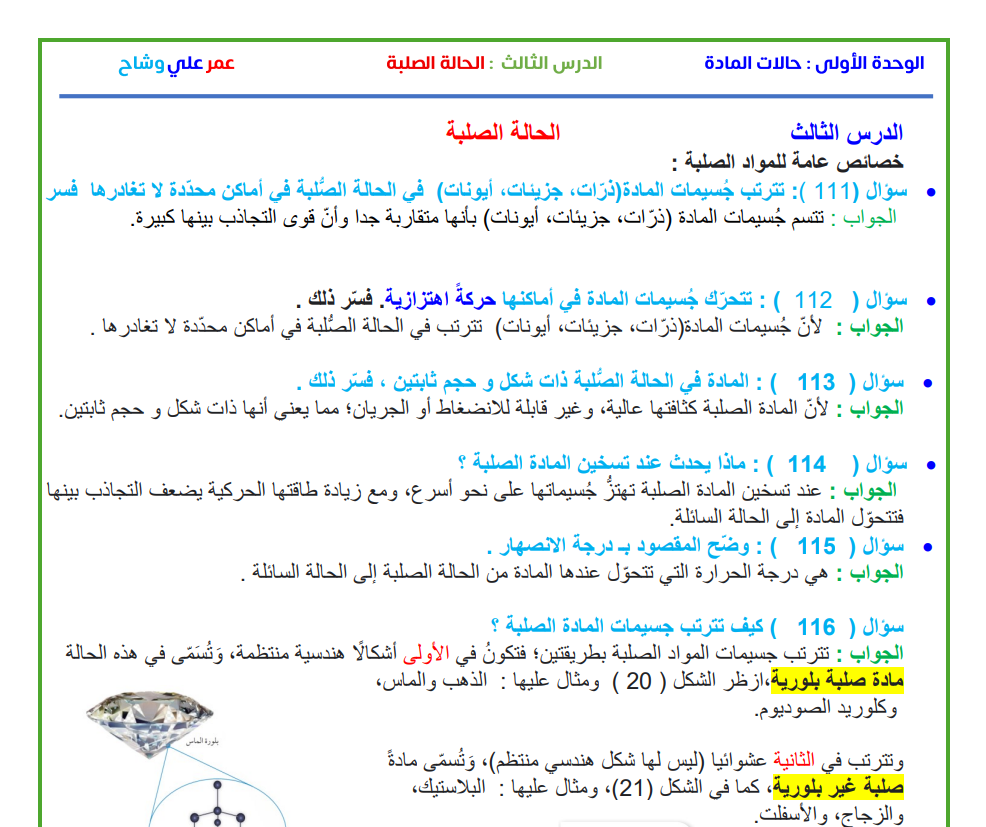 لدرس( 3 ) الحالة الصلبة الوحدة ( 1 )