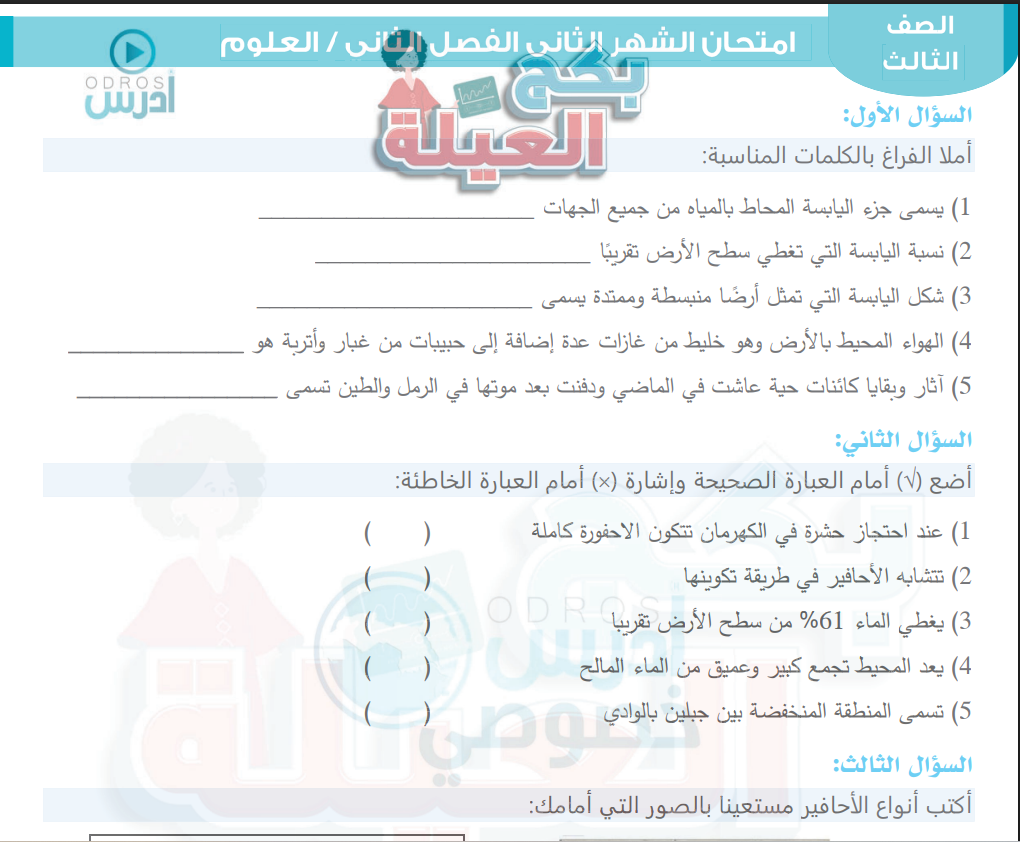 علوم الشهرالثاني الفصل الثاني الصف الثالث