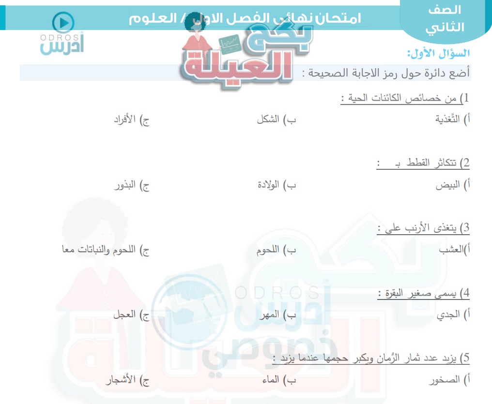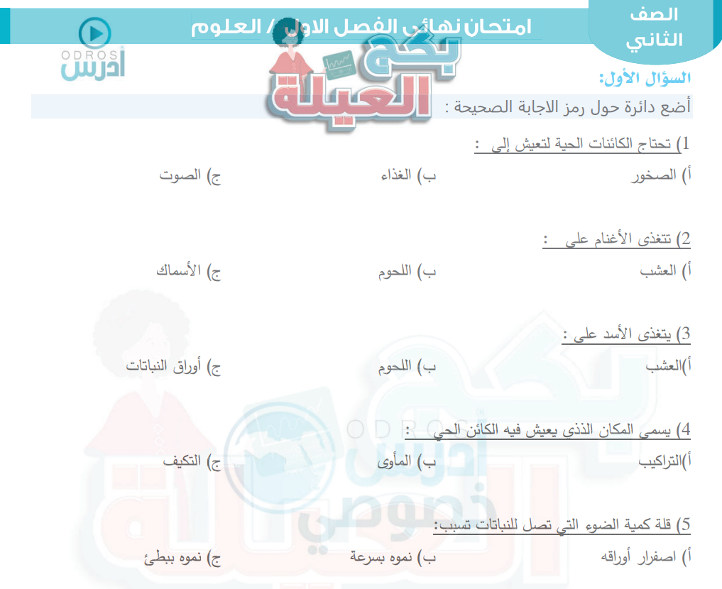 علوم الشهر الاول الفصل الاول الصف الثاني