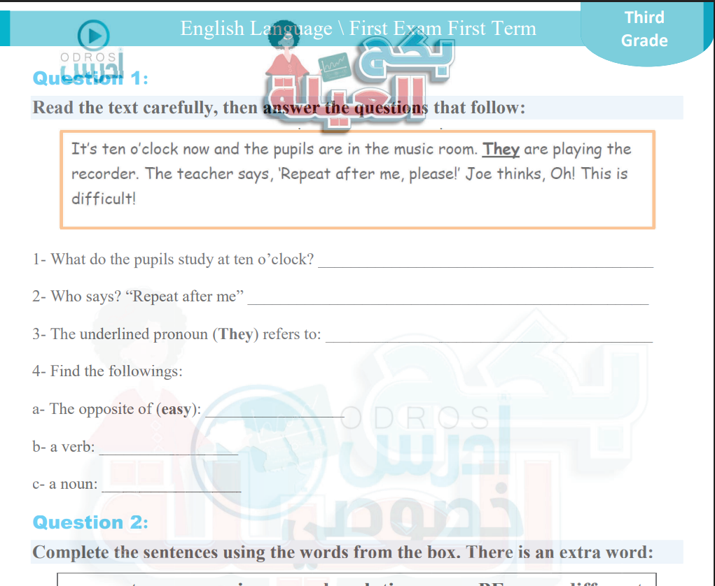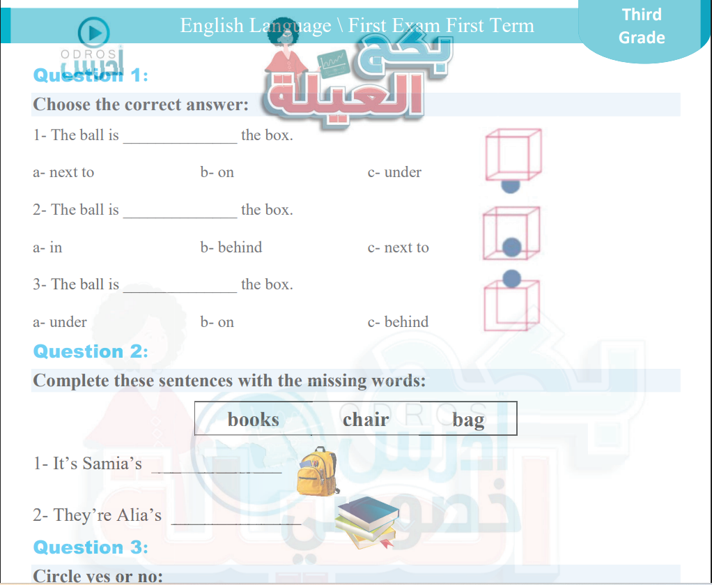 انجليزي شهر اول 2 الفصل الاول الصف الثالث