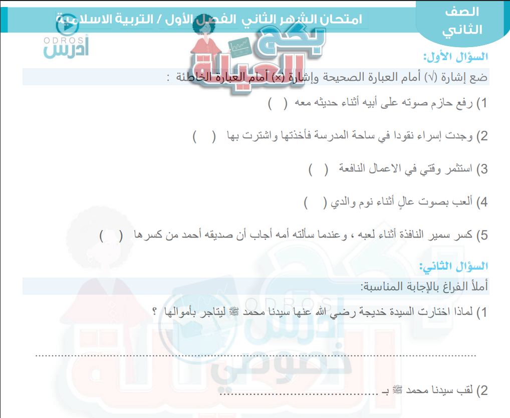 التربية الاسلامية الشهر الثاني 2 الفصل الاول الصف الثاني