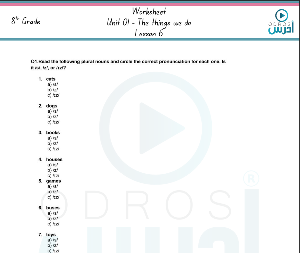 أ. عالية الشيشاني | اللغة الانجليزية الصف الثامن الوحدة السادسة - الدرس الثالث ورقة عمل