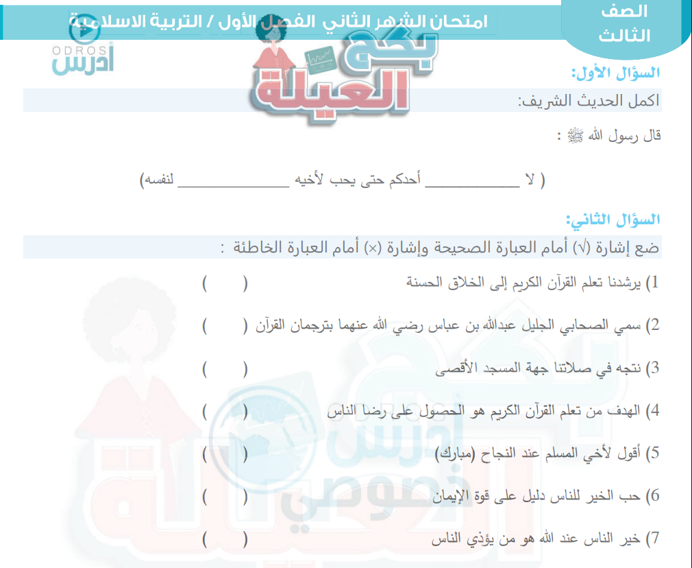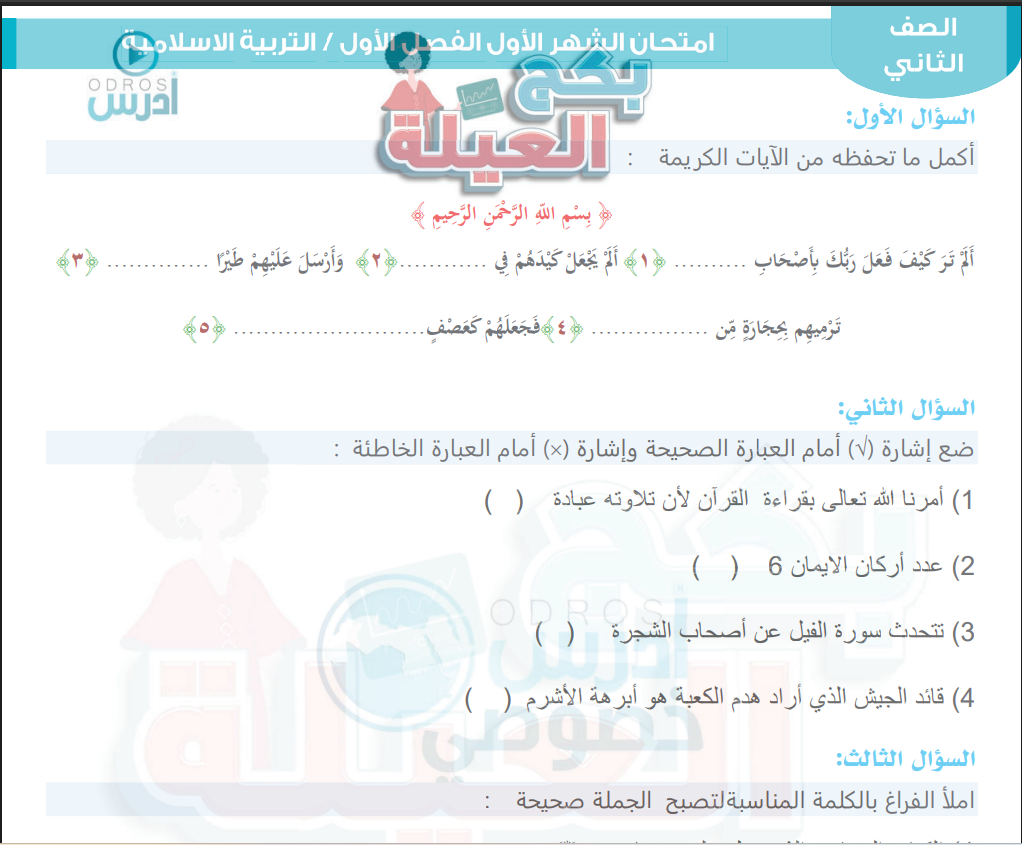 التربية الاسلاميه نهائي الفصل الاول الصف الثاني