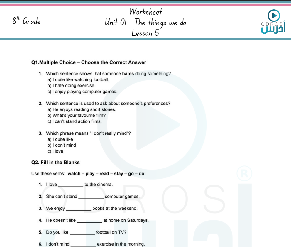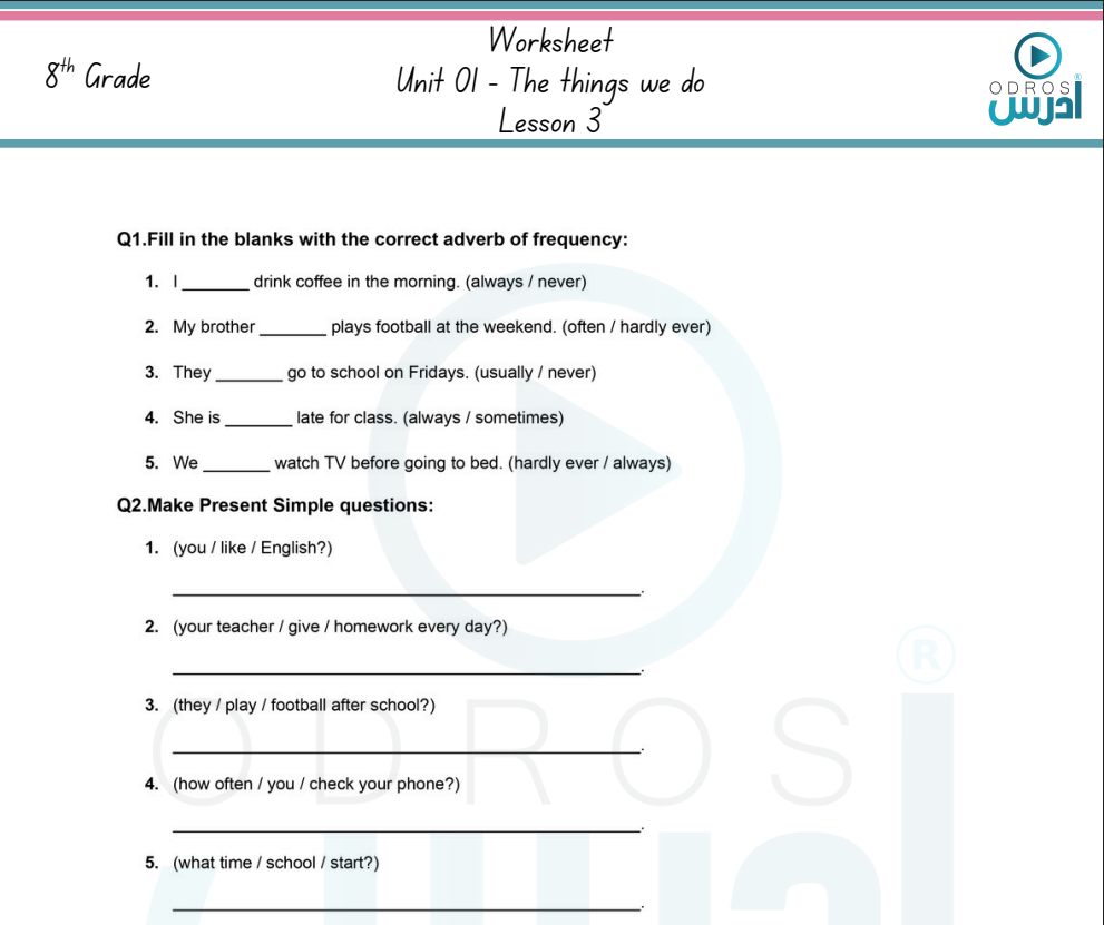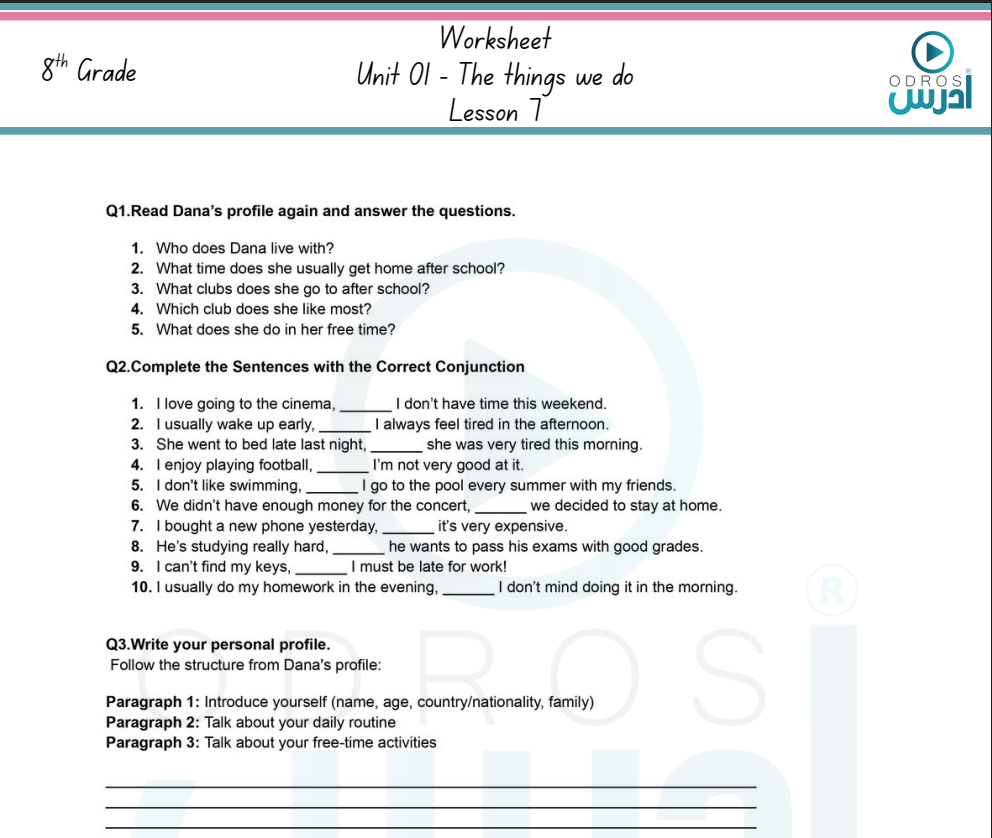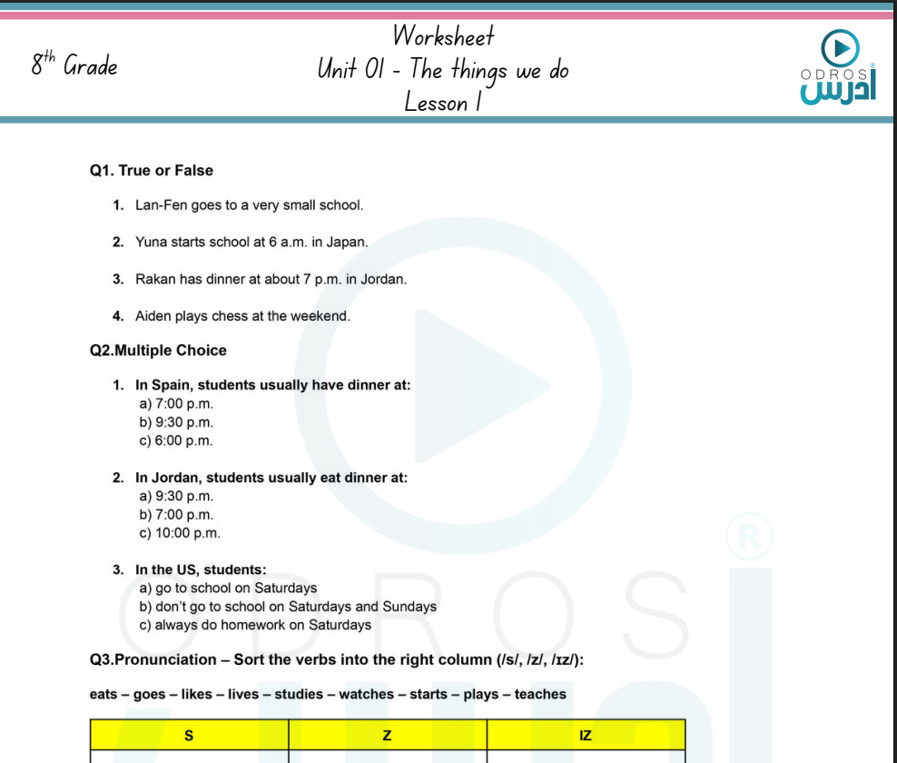 الصف التاسع - الوحدة 8 ورقة عمل الدرس الأول.pdf-أ. عالية الشيشاني | اللغة الانجليزية