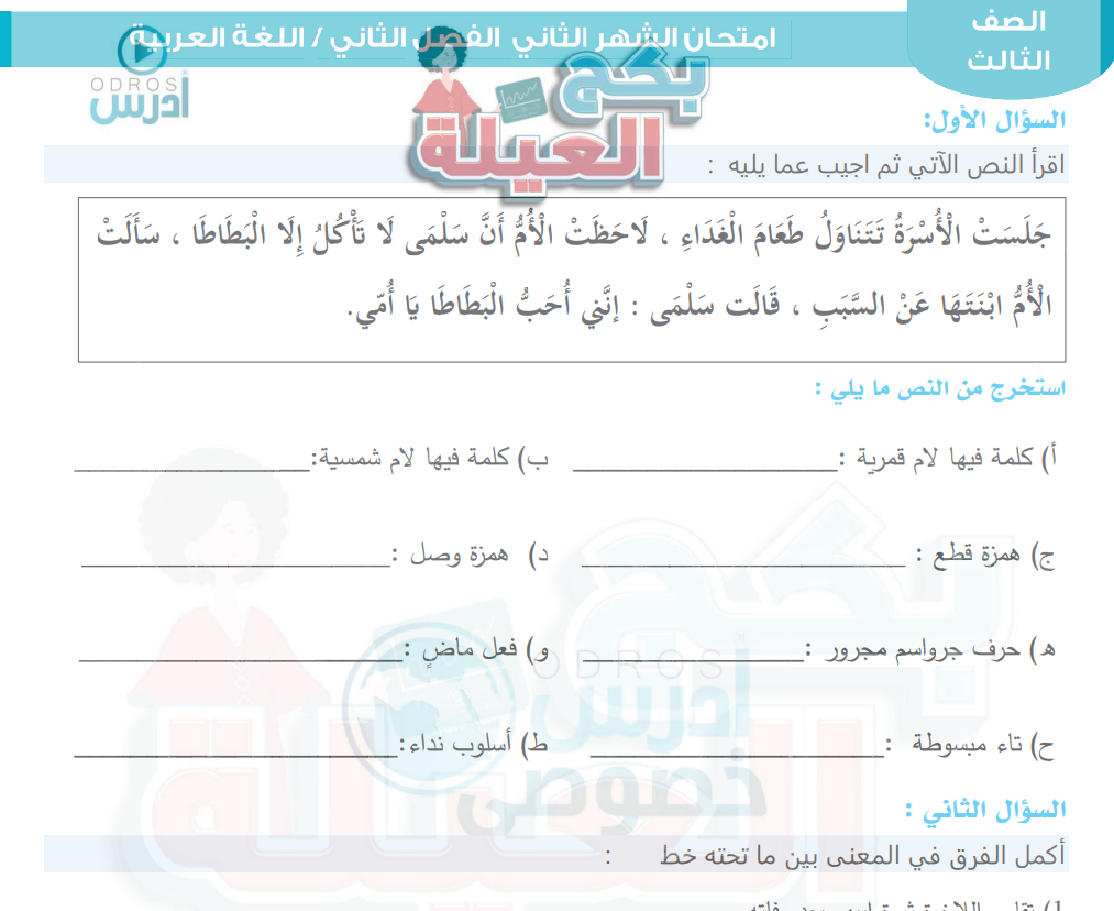 اللغه العربية الشهر الثاني2 الفصل الاول الصف الثالث