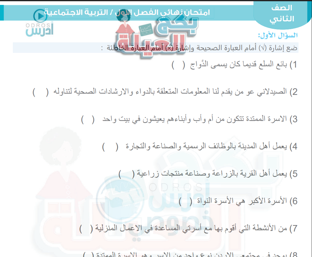 التربية الاجتماعيةنهائي فصل اول الصف الثاني