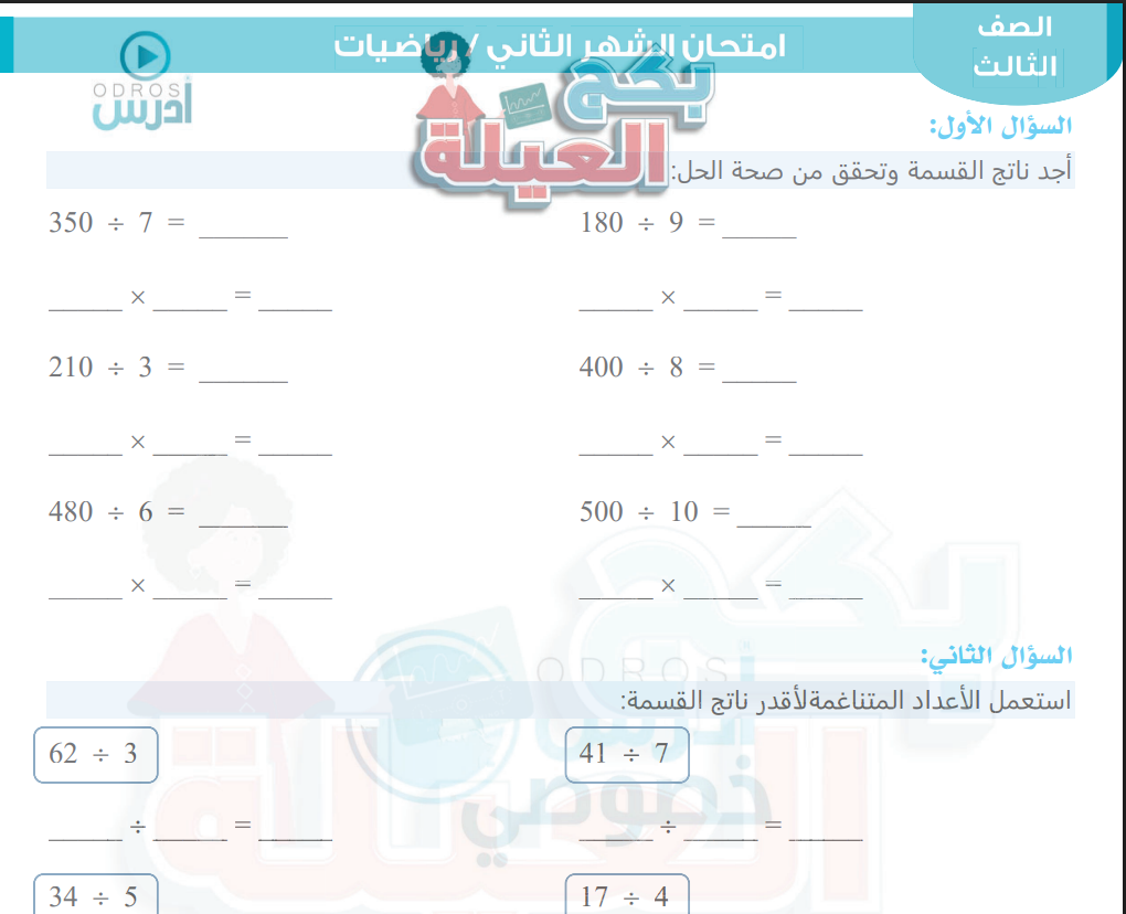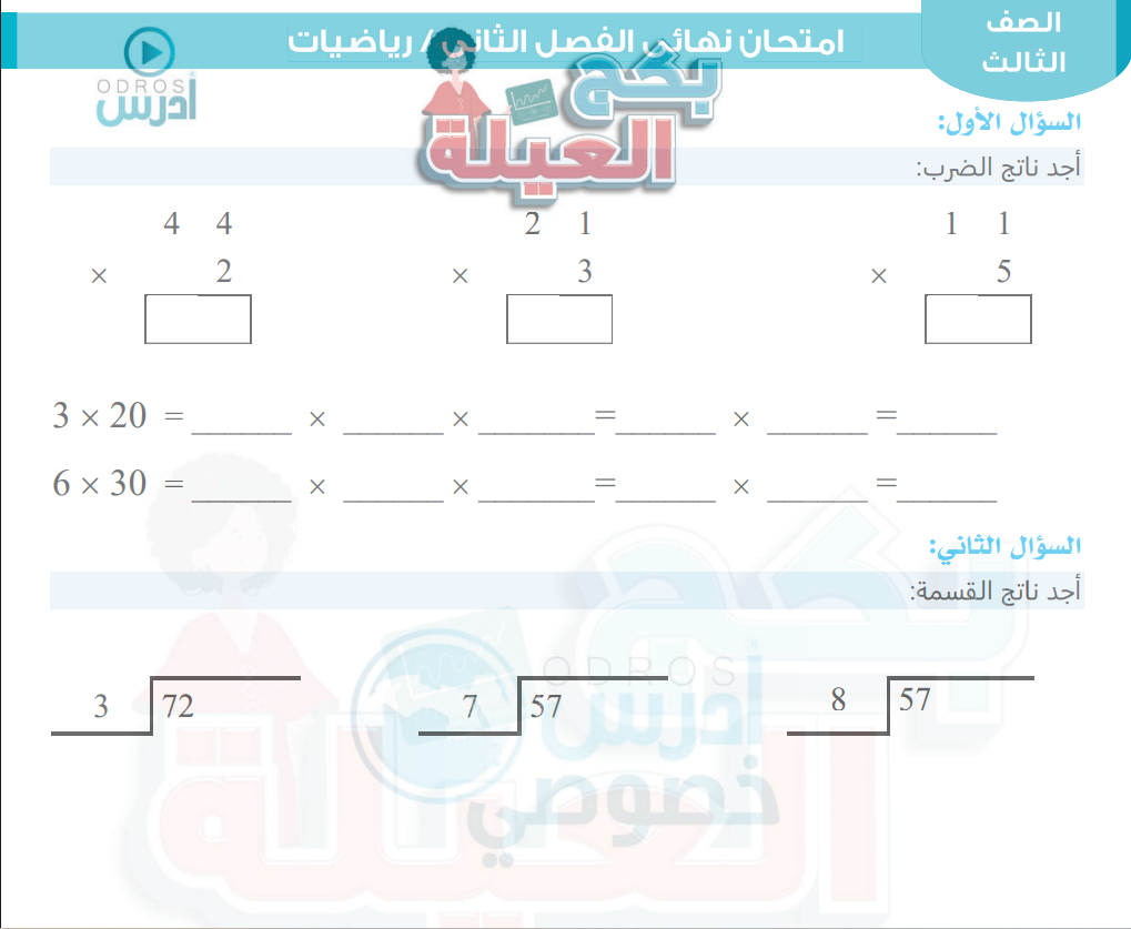 رياضيات الشهر الاول 2الفصل الثاني صف ثالث