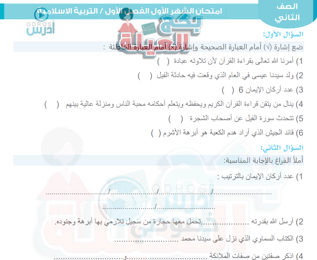 التربية الاسلاميه الشهر الاول 2 الفصل الاول الصف الثاني