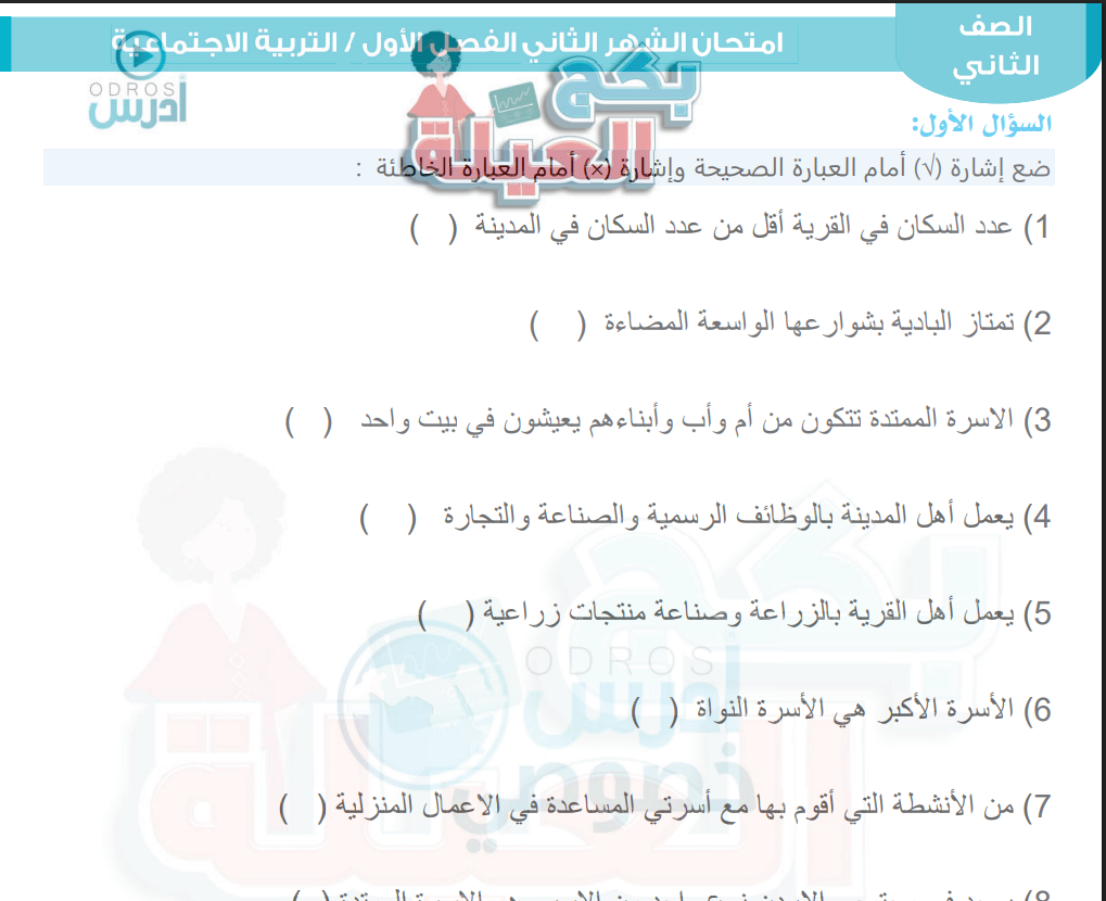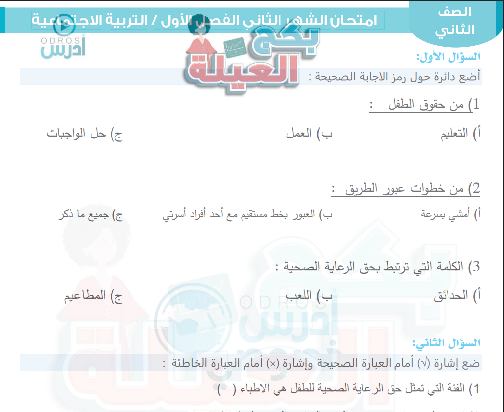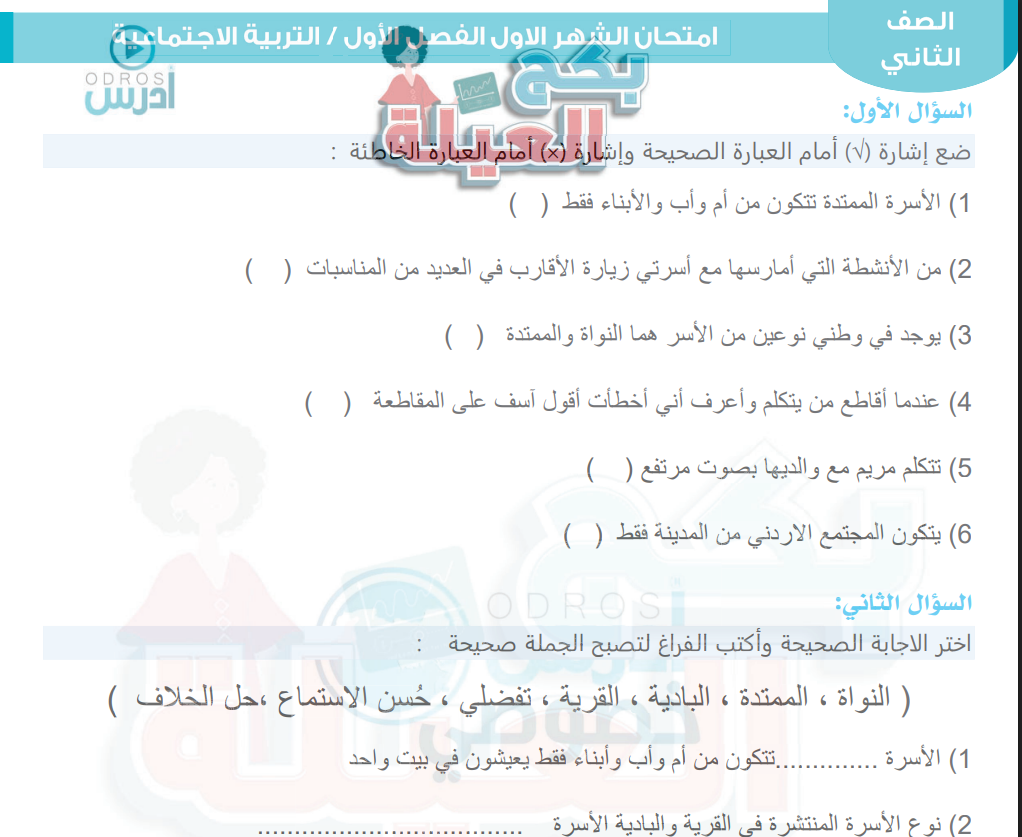 التربية الاجتماعية الشهرالاول الفصل الاول الصف الثاني