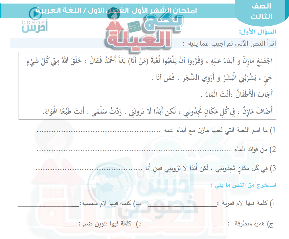 اللغة العربية شهر اول فصل اول الصف الثالث